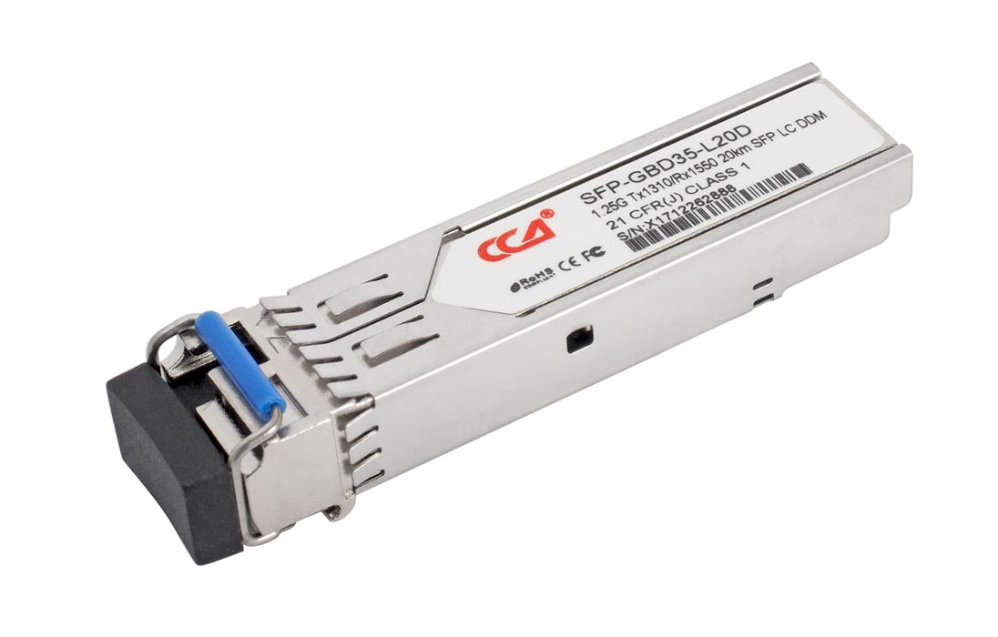 Одноволоконный оптический модуль с форм-фактором SFP для 1G Ethernet, соответствует стандарту 1000Base-BX. Предназначен для работы в одномодовом оптическом волокне (Single-mode fiber, SMF), максимальная дальность 20 км, LC коннектор, рабочая длина волны Tx/Rx: 1310/1550 нм.