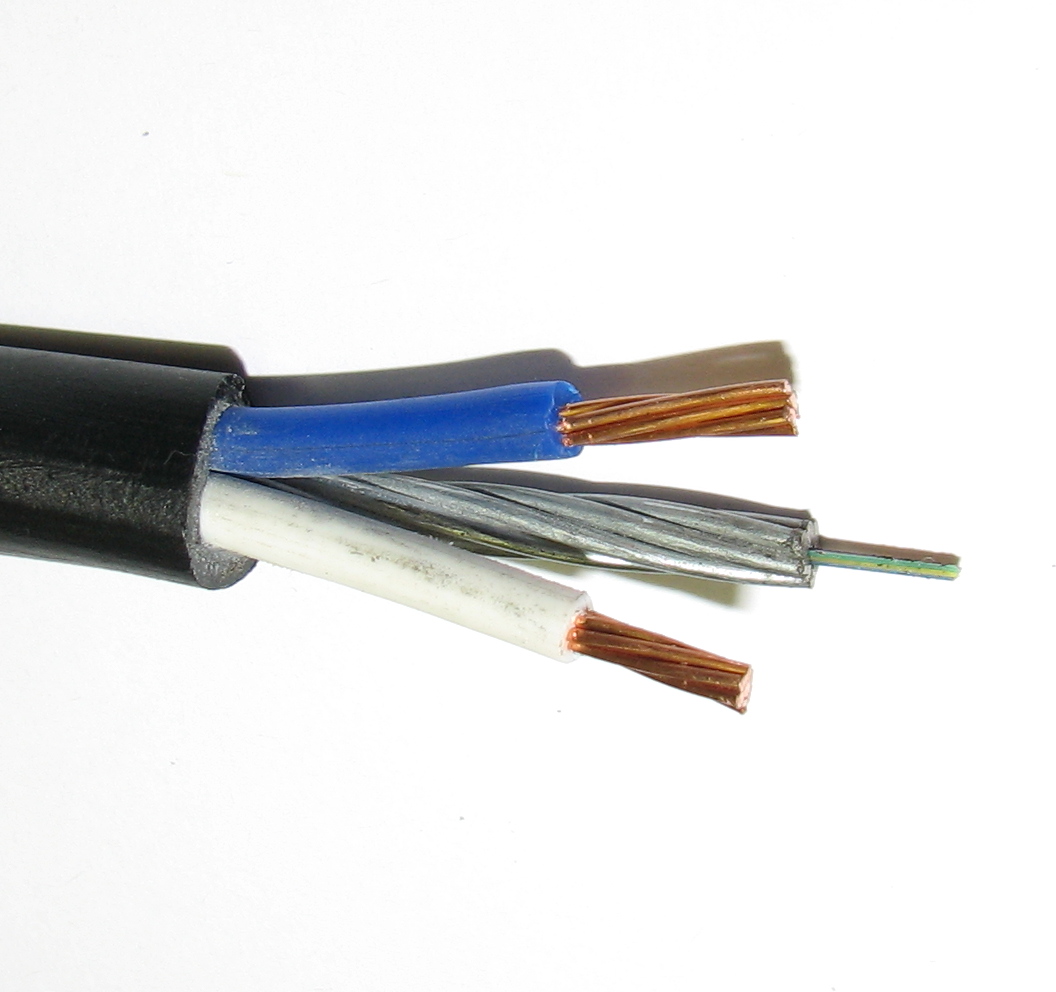 Опто-электрический кабель с 8 одномодовыми волокнами и двумя электрическими жилами, сечением 2,5 мм?, на напряжение до 220 В, силу тока до 13 А. Конструкция оптоэлектрического кабеля создана на основе оптического кабеля СЛ-ОЭК-НУ-(03-8Е2-5,0)+2х2,5), не имеющего своей оболочки. Применяется для вертикальной и горизонтальной прокладки в системах видеонаблюдения, сигнализации и связи, для питания удалённых устройств средней мощности и передачи информации по оптическим волокнам.