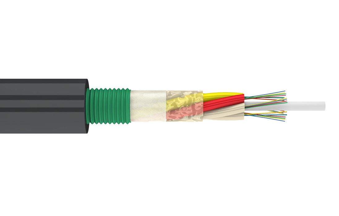 Конструктивно представляет собой повив оптических модулей вокруг стеклопластикового прутка защищенного стальной гофрированной лентой и наружной оболочкой из полиэтилена средней плотности. Свободное пространство в оптических модулях и в сердечнике кабеля заполнено гидрофобным гелем. На сердечник продольно накладывается водоблокирующая лента.