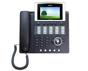 Функционал устройства существенно расширяется благодаря большому цветному ЖК-экрану и возможности программирования горячих/функциональных клавиш (необходима IP АТС серии IPNext). Кроме того, данный IP телефон имеет 25 горячих клавиш для упрощения вызова и возможность подключения панели расширения на 60 клавиш. Два Ethernet интерфейса и поддержка разнообразных сетевых функций позволяют использовать AP-IP300 не только в качестве VoIP терминала, но и NAT/PAT/DHCP сервера и т.п. Для подключения телефонной гарнитуры на левой панели размещены 3,5 мм разъемы.
