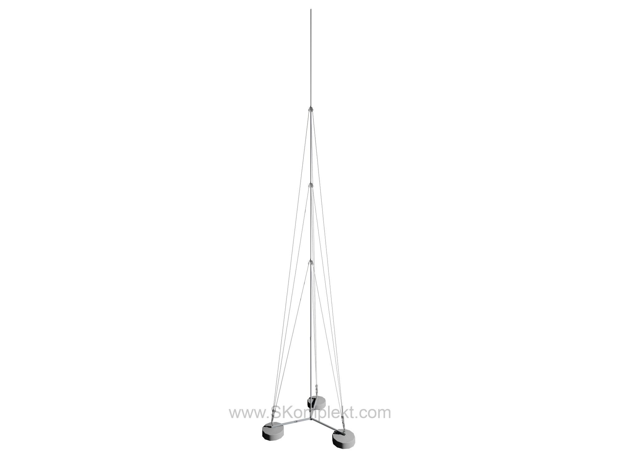 Устанавливается на три бетонные основания и фиксируется при помощи трехступенчатой тросовой поддержки.