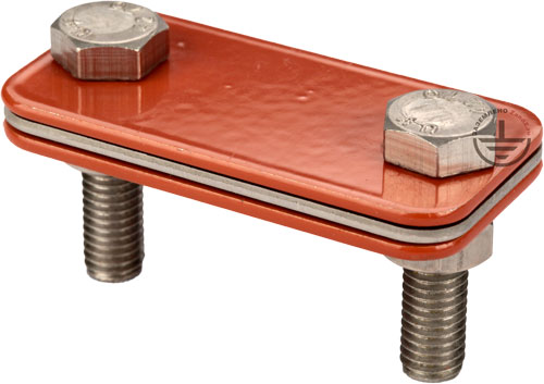 Внутри зажима расположена прокладка из нержавеющей стали, обеспечивающая электрический контакт между токоотводами.